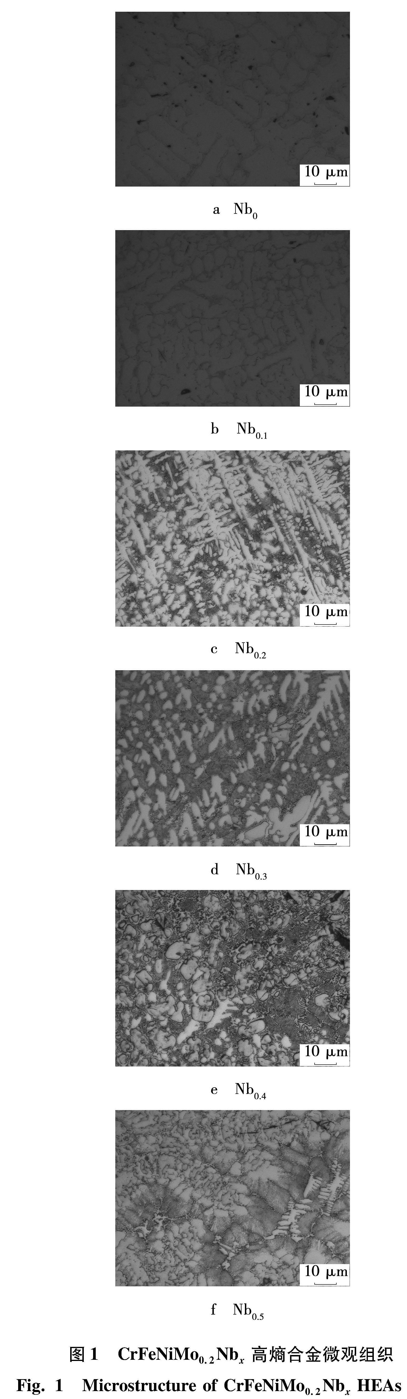 图 1 CrFeNiMo0.2Nbx高熵合金微观组织